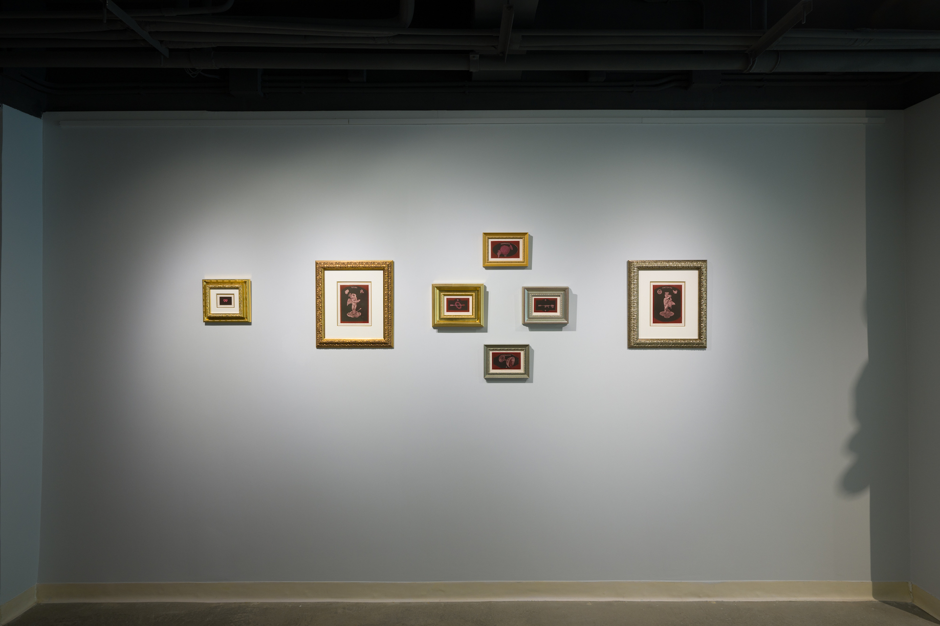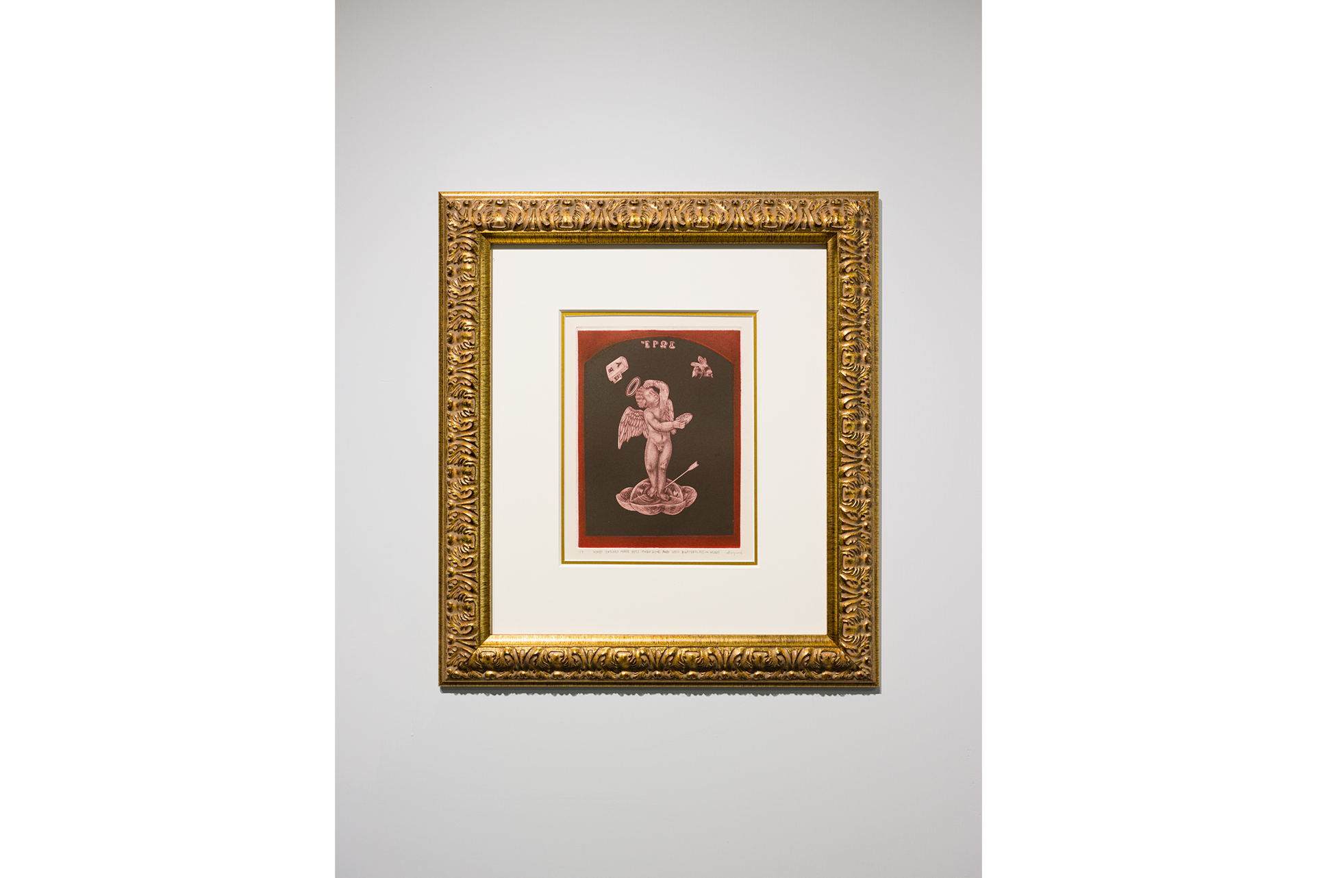 We begin our exploration of sex and power with Lau Hong Lam’s mezzotint series The Bee and The Butterfly which explores the power dynamics in relationships based on the attachment styles of intimacy. The six prints interpret the fluidity of power and madness of obsession within intimacy. The work revolves around two Greek mythological deities of love and sexuality, Eros and Anteros, who represent the expression of love and the response of love respectively. Those who are struck by Eros’ golden arrow sink into unrequited love for others (or one might say a lustful obsession), while those who are struck by Anteros’ arrow respond to the love of others. In mythology Anteros was born to balance the madness and confusion caused by Eros’ random arrows and to give love its true reward. Eros and Anteros are often portrayed as opposites, but at the same time they cannot exist alone. Eros and Anteros are mirrors that complement and complete each other, just as in an intimate relationship, love needs to be an even match, not a one-way projection or exertion of power. In many ancient Greek texts, Eros and the bee have a very close relationship, with Eros’ arrows being described by his mother, the goddess of love Aphrodite as causing pain like a bee sting, while Anteros’ butterfly wings are often depicted as a symbol for anxious attachment styles. Although the figure with anxious attachment is often interpreted as a tormented and abusive character for the figure with avoidant attachment, the suffocating love they give is also a punishment for the avoidant figure. The chase and flight are like an endless cycle. Their love for each other, though seemingly toxic, tends move towards balance eventually. These are expressed in the works as different symbols. Both Eros and Anteros are depicted with their respective wings of feather and butterfly. The connection between the bee and Eros and the honey-sweet sensation of love is expressed through the motifs of honey and the bee, while Anteros’ response of love, pure love is represented by the butterfly motif and the stars that reference the fate of Ariadne who had experienced different forms of love, the star representing the requited love she received from Dionysus. Pure love is a completely sensual thing, it is the desire for sex. We are wounded by the golden arrow of Eros, we fall in love with total insanity and sweet honey-like fantasies, and at the same time we yearn for the reciprocation of love or sex.