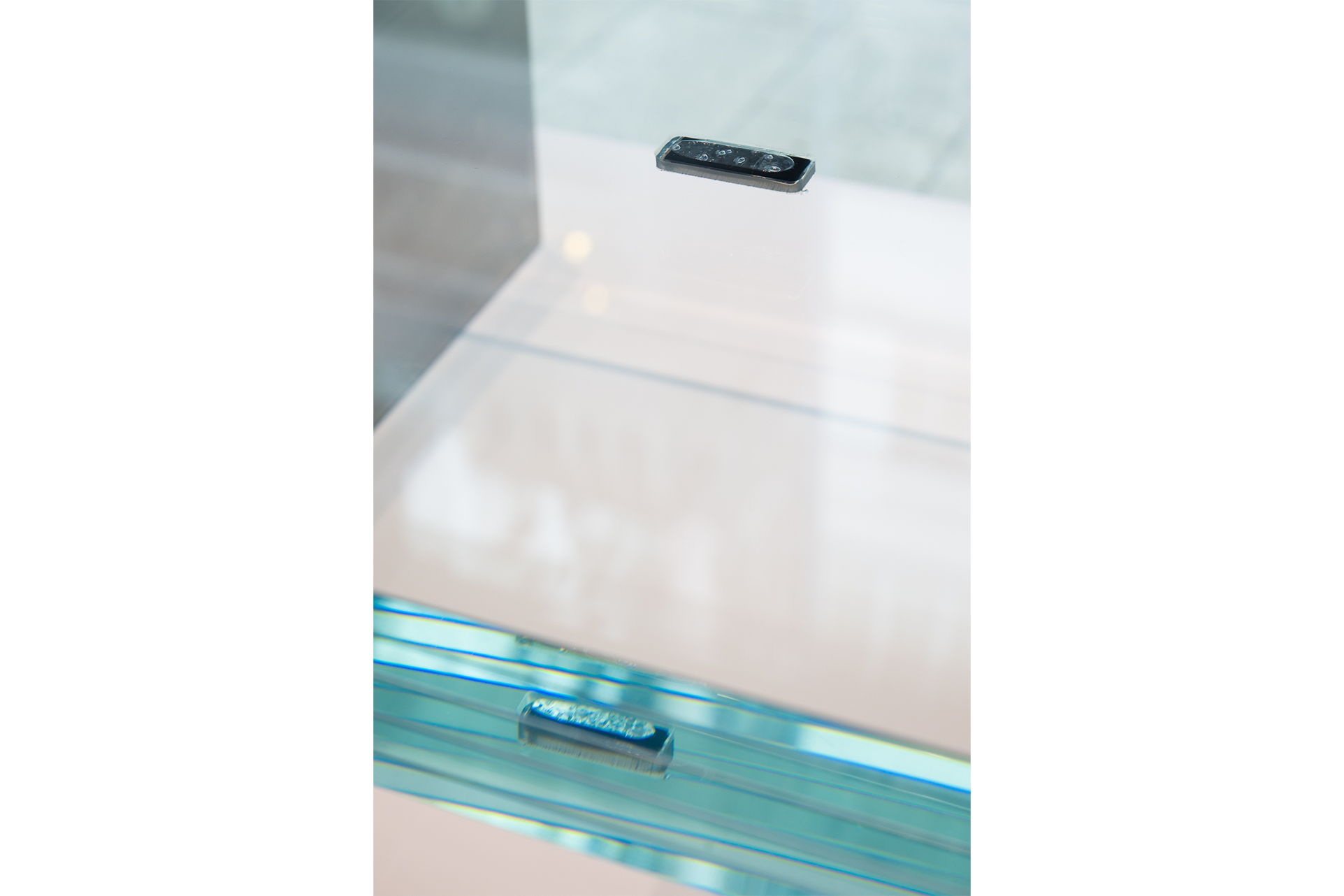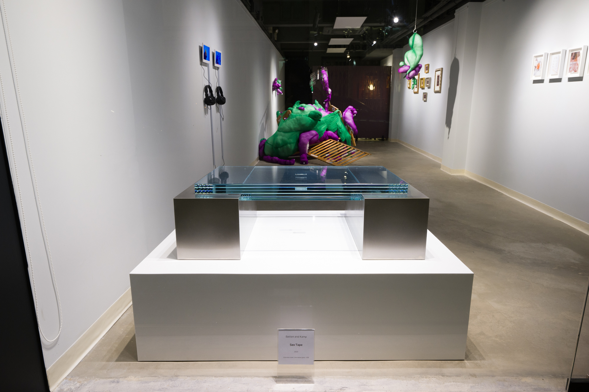 Having started with Lau Hong Lam’s series of works that explore sex and power dynamics within romantic relationships, we now end with Batten and Kamp who are in both a creative and romantic partnership. Among this selection of artists, Batten and Kamp are most able to explore relationship power dynamics and sex in work that directly involve both parties in the narrative, as opposed to an artist creating work about their own relationship from a one-sided point of view. The result of this examination is Sex Tape. It is simultaneously the most explicit and yet the most aesthetically distant from the topic of sex itself out of this group of works. Sex Tape is, in a nutshell, a literal sex tape of Batten and Kamp filming themselves having sex. The sex tape is then encoded in the USB drive which is in turn encased within a glass and stainless- steel coffee table. The structure of the table is made so that the USB and sex tape is inaccessible unless the collector chooses to destroy the artwork. Aesthetically, the table appears cold, clinical even, reminiscent of sci-fi, futuristic furniture with nothing to hint of the human, carnal nature of the content contained inside. And so, what one might expect from a ‘sex tape,’ an exploration of sex reflecting the power dynamics within the relationship is instead turned towards the audience. In the act of effectively withholding their sex tape from the audience, Batten and Kamp has chosen to direct the query of sex and power dynamics externally, one of power between the artist and the audience/collector. In withholding the sex tape from the audience/collector Batten and Kamp exerts power in preventing the consumption of a piece of themselves and their relationship, but also in enticing and teasing the audience/collector with the conceptual promise of sex. It questions the power dynamic between artist/audience/collector, and comments on the phenomenon where the audience wants more than what the artist would like to give.