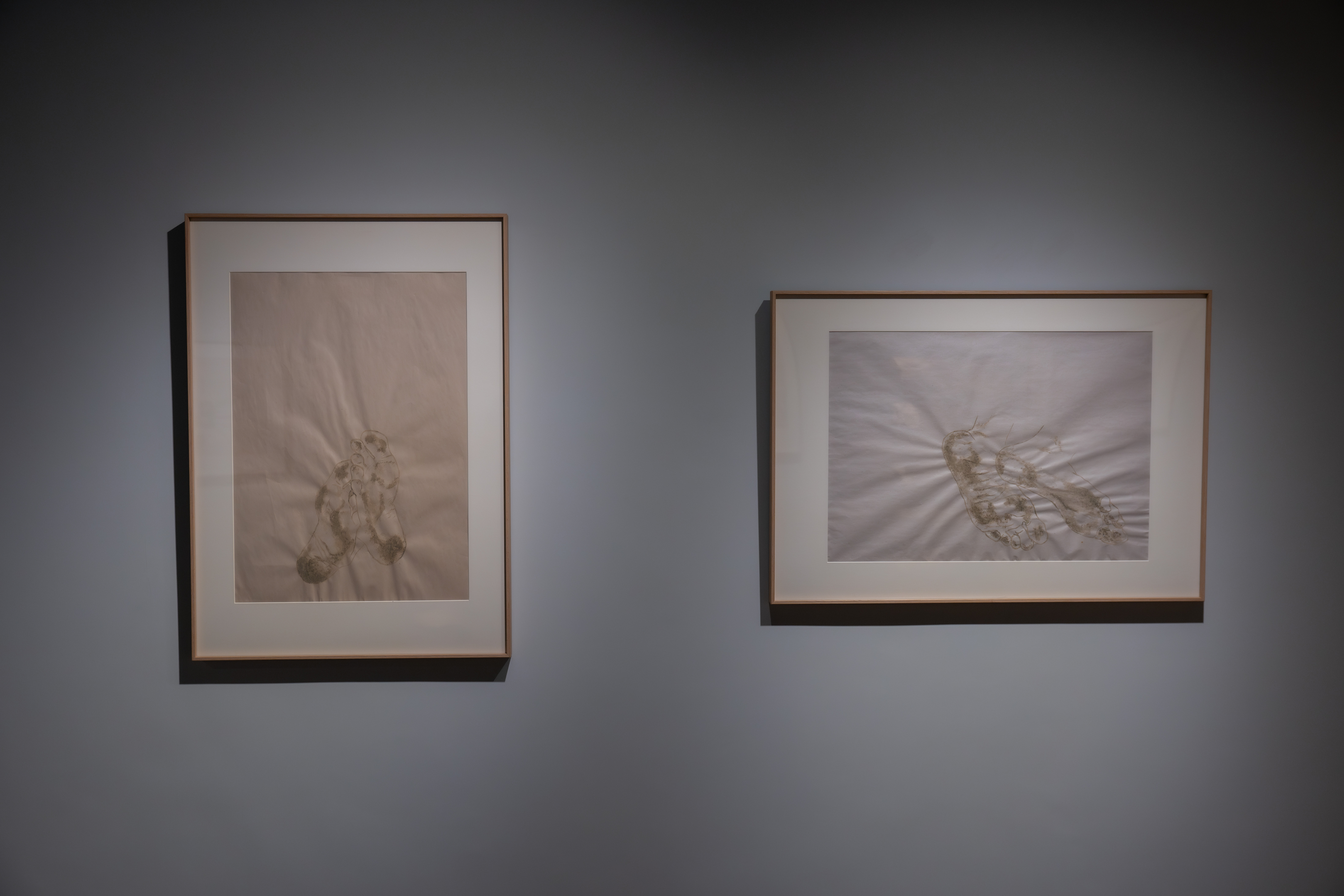 Cuddle是一系列用水泥在紙上畫的腳。每幅畫都描繪了一雙面向觀眾的腳,彷彿腳的主人正躺著一 般。對於高哼來說,一雙腳是紮根的象徵,是身體與地面最緊密相連的部分。你經常會看到一些無家 可歸的人赤腳睡覺。無家可歸的人沒有家,經常四處流浪,尋找臨時休息的地方。具有諷刺意味的 是,無家可歸的人他們經常站著,與地面的聯繫最緊密,但卻無法紮根,歸屬感也最薄弱。這些作品 中存在一種二元性,腳的位置可能看起來很親密,就像有人在擁抱(正如標Cuddle所暗示的那般), 但也指你周圍可能看到的無家可歸者的赤腳。只有一雙腳,暗示著無家可歸者感到的孤獨與孤立,因 為他們被排除在社會和親密關係之外。 除了家以外,他們還失去了歸屬感。