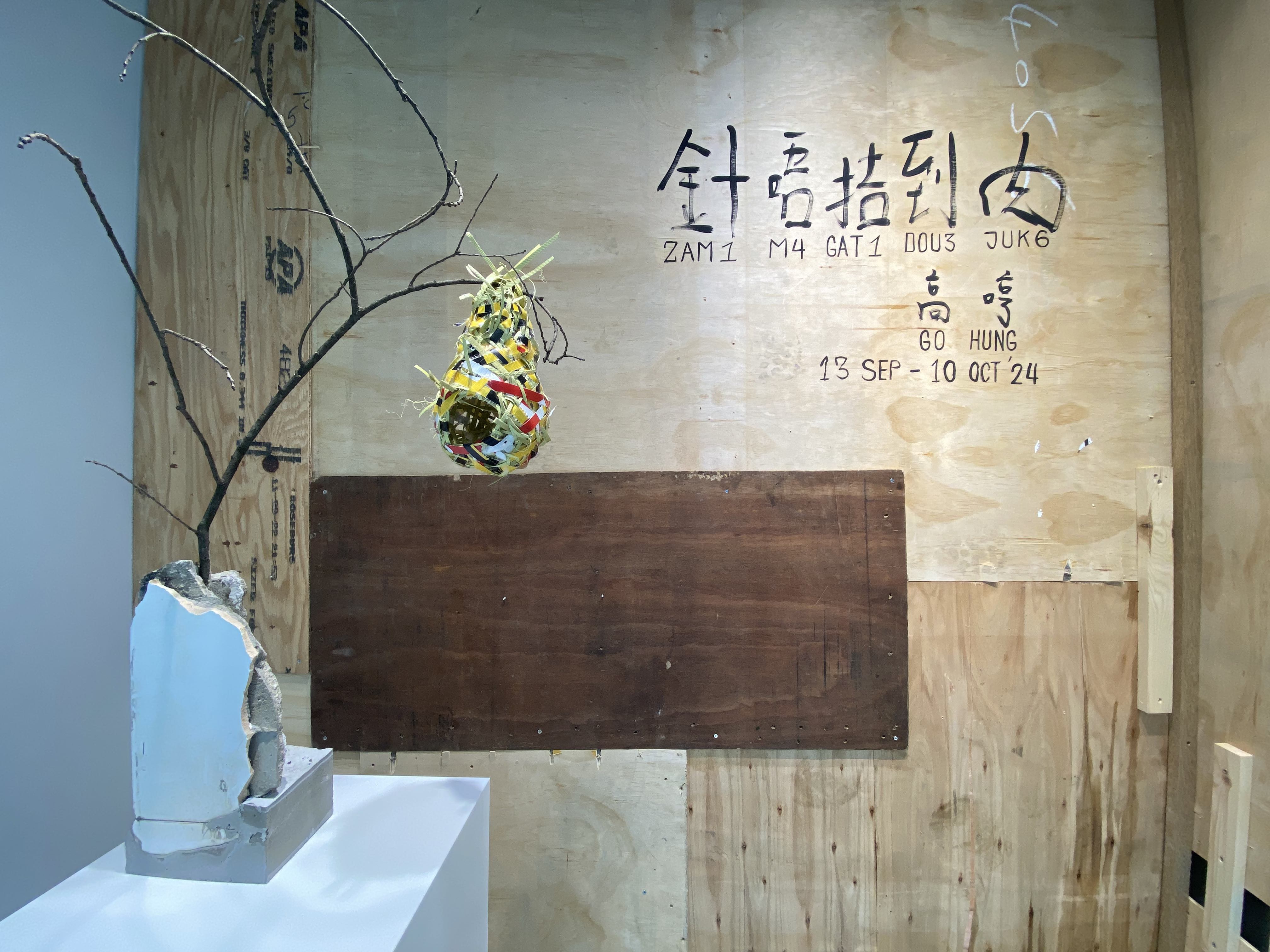 展覽的標題“針唔拮到肉”(zam1 m4 gat1 dou3 juk6)指的是廣東諺語「針唔拮到肉唔知痛」的前半部 分(zam1 m4 gat1 dou3 juk6 m4 zi1 tung3),其字面意思是“除非針刺入你的身體,否則你不會知道疼 痛。“意思是不去面對或處理某件事,就無法理解其中的困境與兩難。高哼用這個詞來形容無家可歸。 除非你親身經歷過無家可歸,否則你永遠不會真正理解無家可歸者所面臨的困難。在這次展覽中,高 哼試圖探索無家可歸者所面臨的問題,挖掘他自己對無家可歸的恐懼,以及他對香港無家可歸者的觀 察。