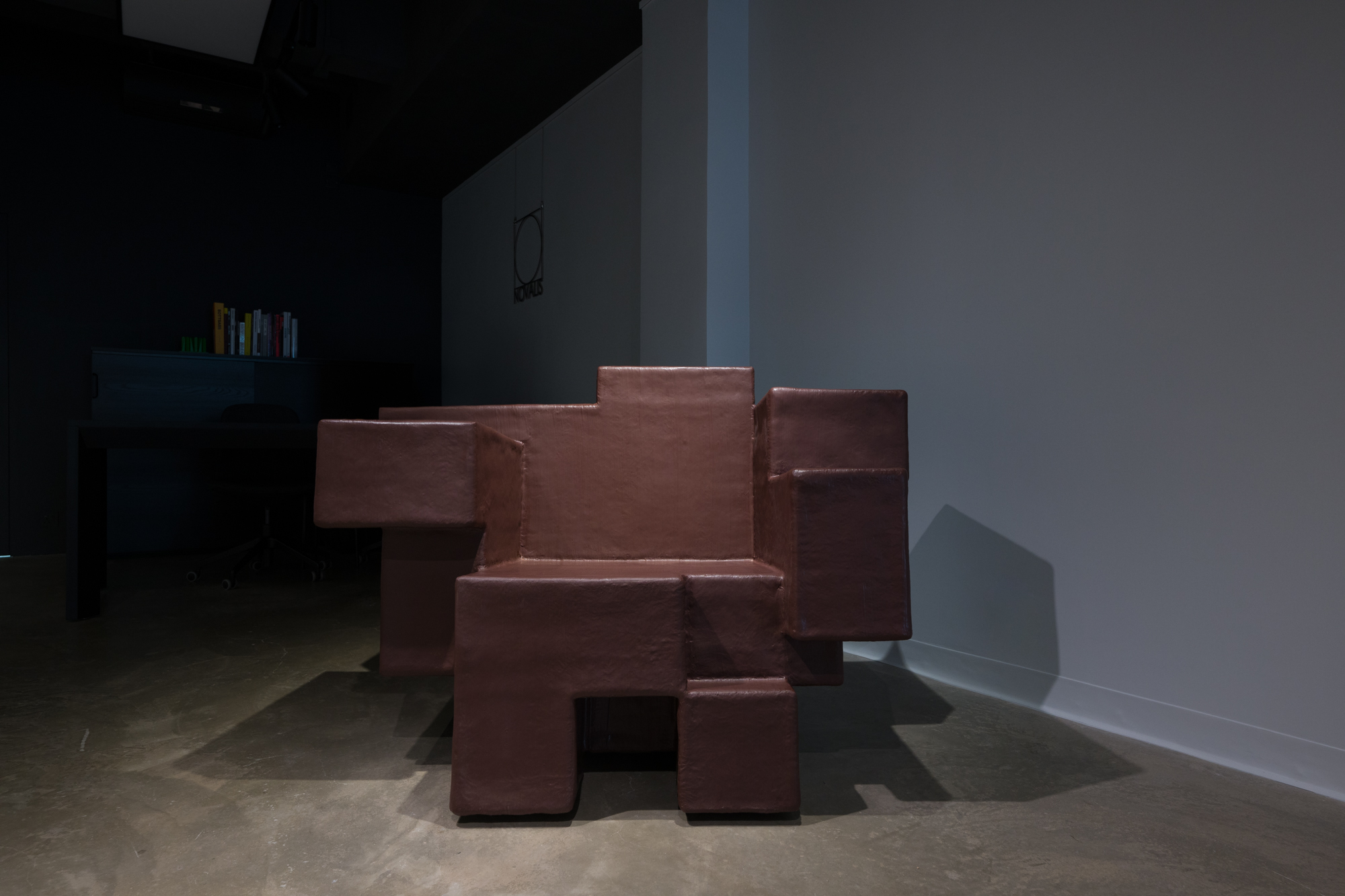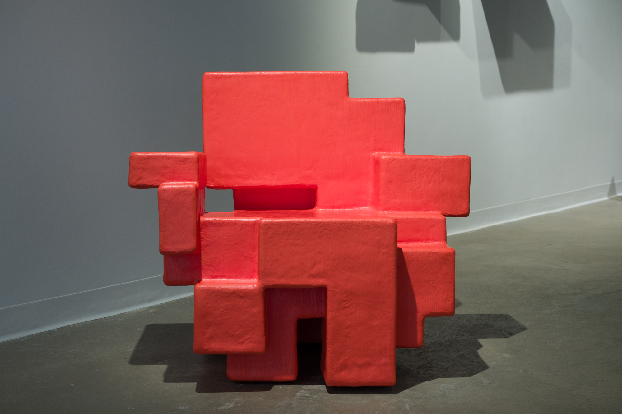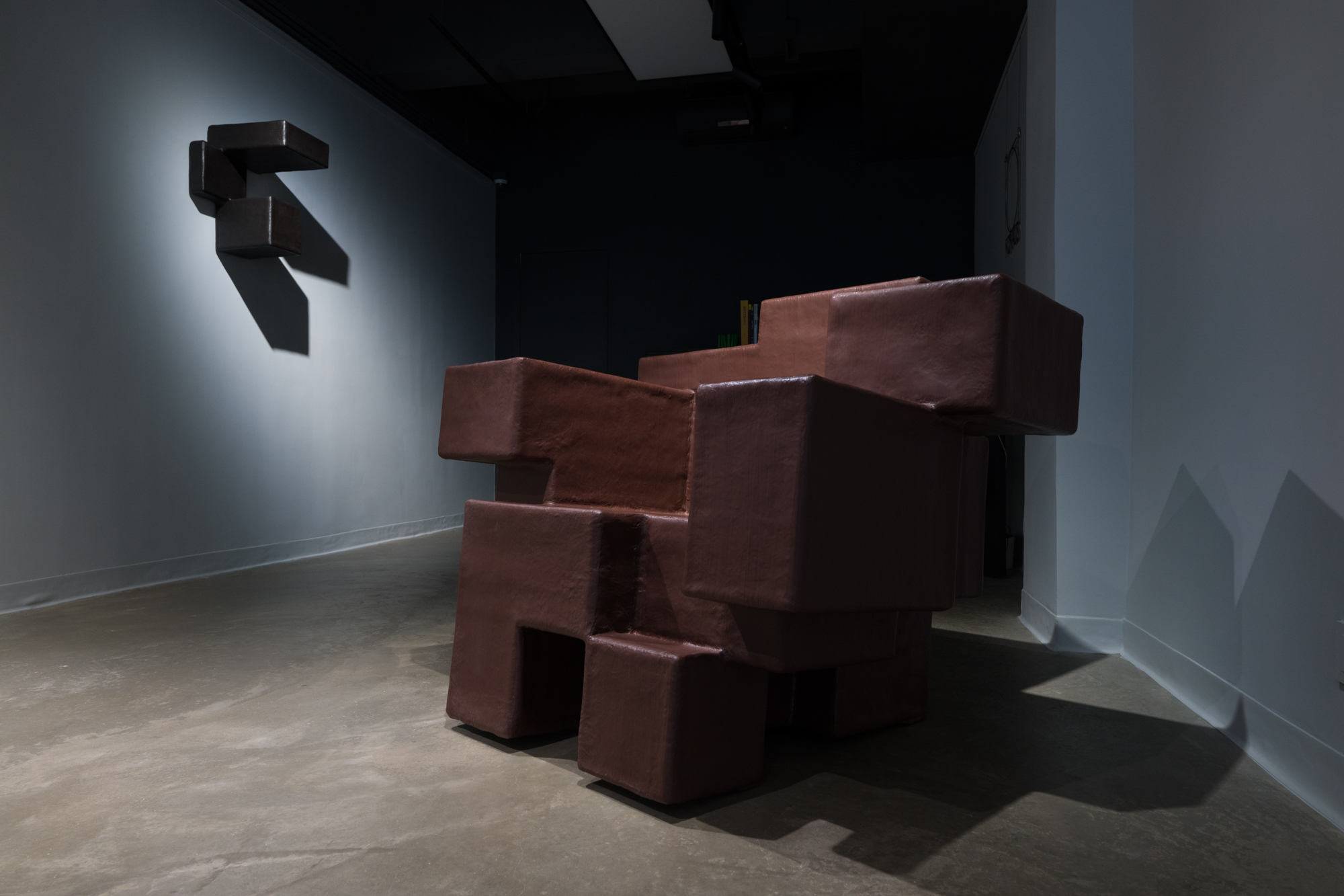 步進香港的 Novalis 藝術設計畫廊,我們便立刻喪失對時間和地點的所有感知,眼前是一組神秘的幾何雕塑元素,它們以強烈的原色——紅色、白色 和黑色呈現,彷彿是從地板和牆直接破壁而出。這些元素令人聯想到卡濟米爾.馬列維奇(Kazimir Malevich)1920 年代的絕對主義(Suprematist)白色單色建築體(Architectones),又或者是羅伯特.莫里斯(Robert Morris)1960年代簡約主義的灰色形態(Gestalts),並透過恍如來自《2001太空漫遊》續集中,充滿未來感的七彩岩石而被重新審視。細看之下,我們意識到自己不是進入了一個非客觀空間(借用馬列維奇的術語),而是看到供人們使用的實用物品,它們都屬於日常生活中可識別的類型:扶手椅、凳子、長椅、書架……這是都是藝術還是設計作品?或許理查德.阿特施瓦格(Richard Artschwager)的分析能為我們解答:「如果你坐在上面,它就是椅子;如果你圍著它走並觀察它,它就是雕塑……視覺性和物體性可以同時存在而互不矛盾。」(2)