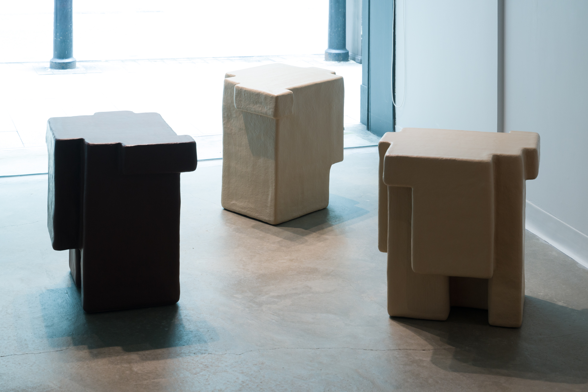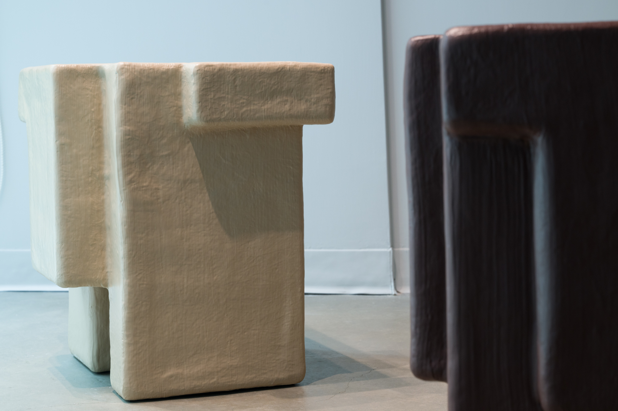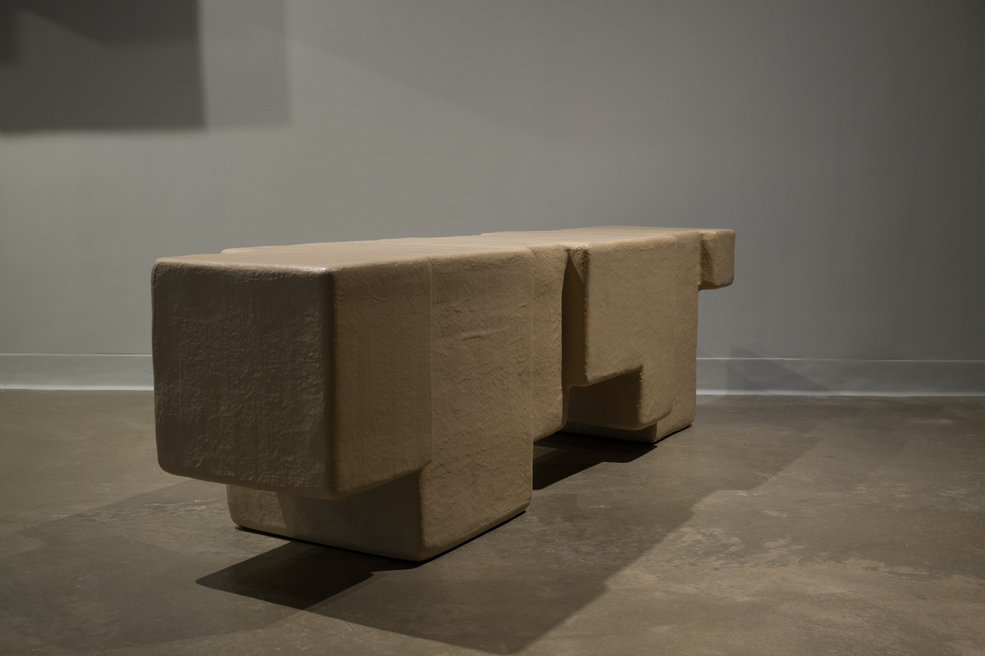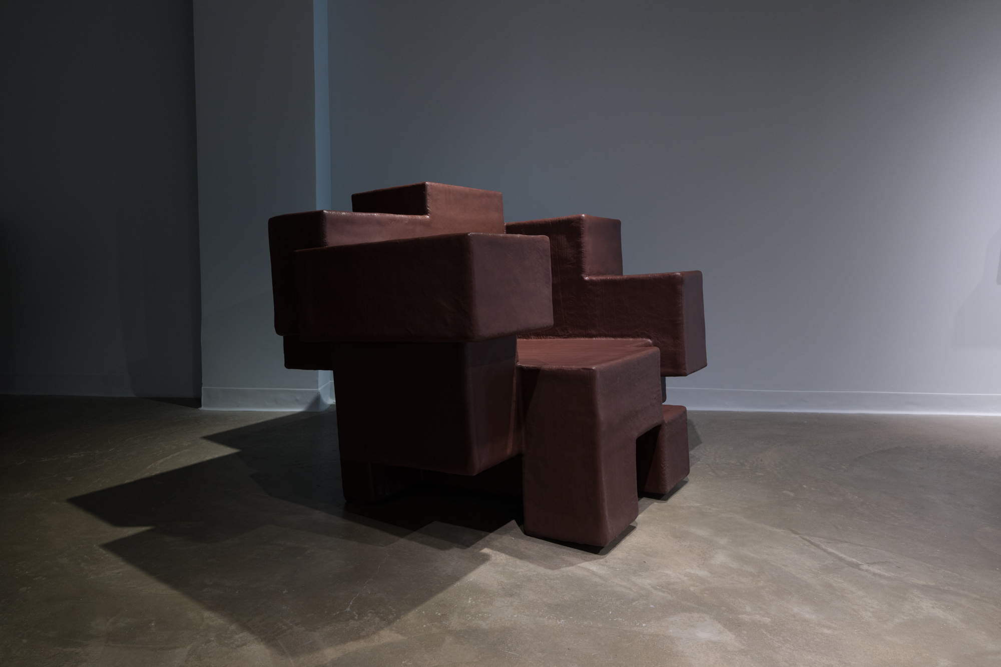 步進香港的 Novalis 藝術設計畫廊,我們便立刻喪失對時間和地點的所有感知,眼前是一組神秘的幾何雕塑元素,它們以強烈的原色——紅色、白色 和黑色呈現,彷彿是從地板和牆直接破壁而出。這些元素令人聯想到卡濟米爾.馬列維奇(Kazimir Malevich)1920 年代的絕對主義(Suprematist)白色單色建築體(Architectones),又或者是羅伯特.莫里斯(Robert Morris)1960年代簡約主義的灰色形態(Gestalts),並透過恍如來自《2001太空漫遊》續集中,充滿未來感的七彩岩石而被重新審視。細看之下,我們意識到自己不是進入了一個非客觀空間(借用馬列維奇的術語),而是看到供人們使用的實用物品,它們都屬於日常生活中可識別的類型:扶手椅、凳子、長椅、書架……這是都是藝術還是設計作品?或許理查德.阿特施瓦格(Richard Artschwager)的分析能為我們解答:「如果你坐在上面,它就是椅子;如果你圍著它走並觀察它,它就是雕塑……視覺性和物體性可以同時存在而互不矛盾。」(2)