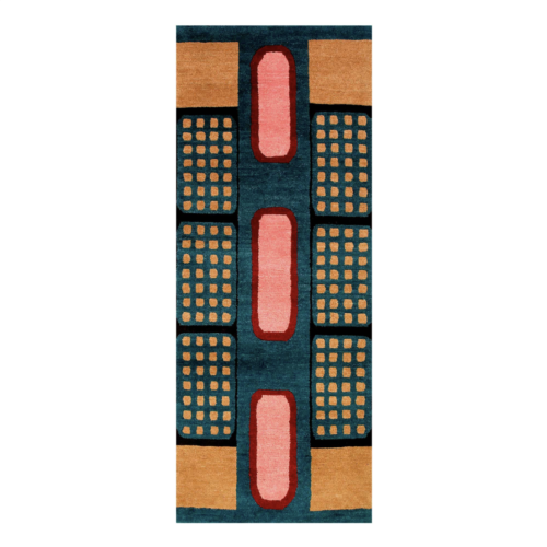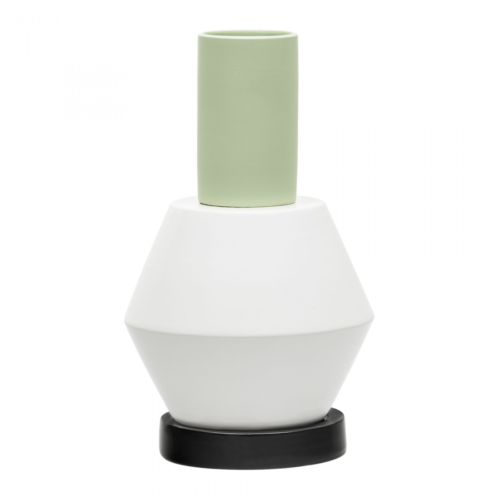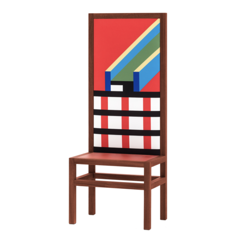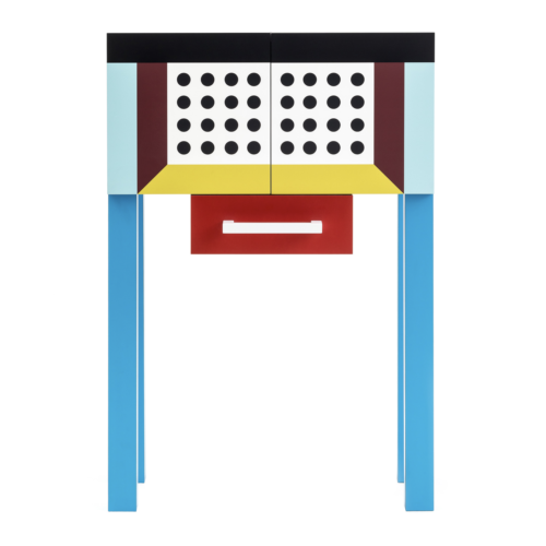 Cupboard with draw in painted wood, structure and top in plastic laminate, doors with printed decoration.