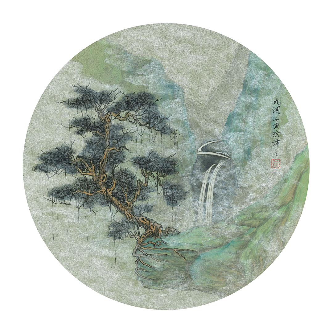 Chui Pui Chee 九淵之四十九 Nine Abysses XLIX, 2022 Ink and colour on paper 35 cm diameter