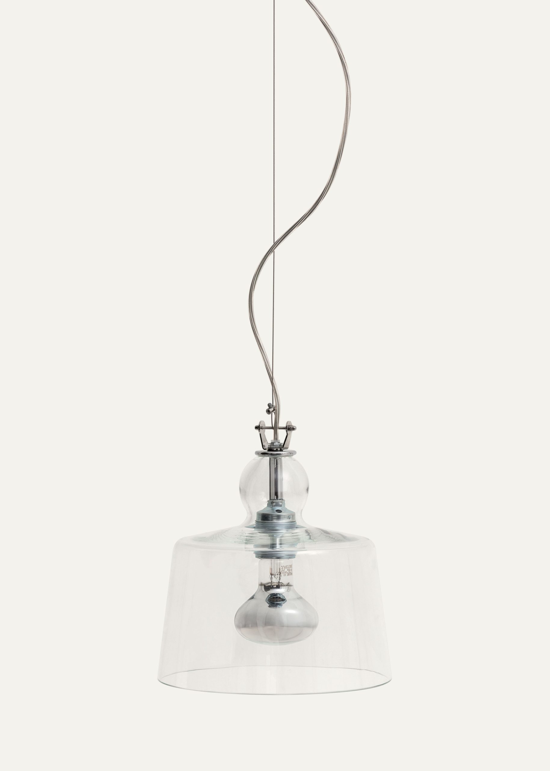 Michele De Lucchi ACQUATINTA (TRANSPARENT), Suspension lamp, 1996 Blown glass, shiny chromed metal: ø22 cm Diffuser: H21 cm