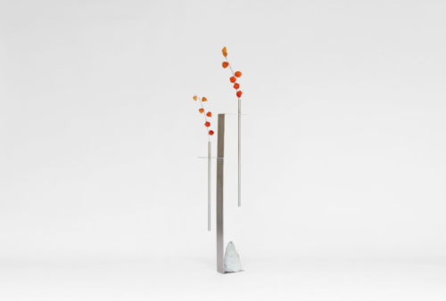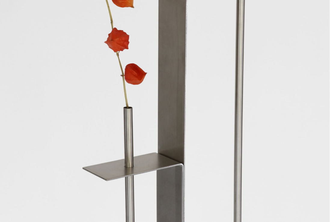 Batten and Kamp Odd Balance 02, 2019 Collection: Odd Balance Hand brushed stainless steel, granite, dried floral. Signed. Each is unique. L 50,W 25, H 100 cm Limited edition of 24