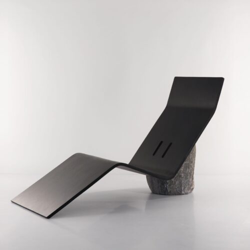 Batten and Kamp Origin, 2021 Collection: Elsewhere by Novalis Oak plywood lounge chair, granite stone, steel fixings W 53 cm x L 170 cm Limited edition of 9