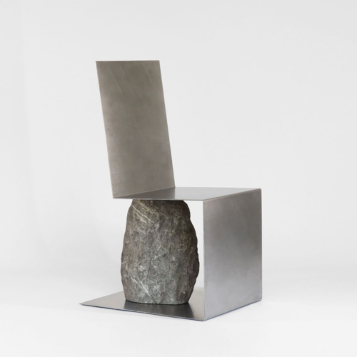 Batten and Kamp Steel and Stone Chair, 2019 Collection: Shelter to Ground Hot rolled steel, granite. Signed. Each is unique. Dining version: L 54, W 44, H 97 cm (seat height: 43 cm) Lounge version: L 61, W 48, H 95 cm (seat height: 40.5 cm) Limited edition of 24
