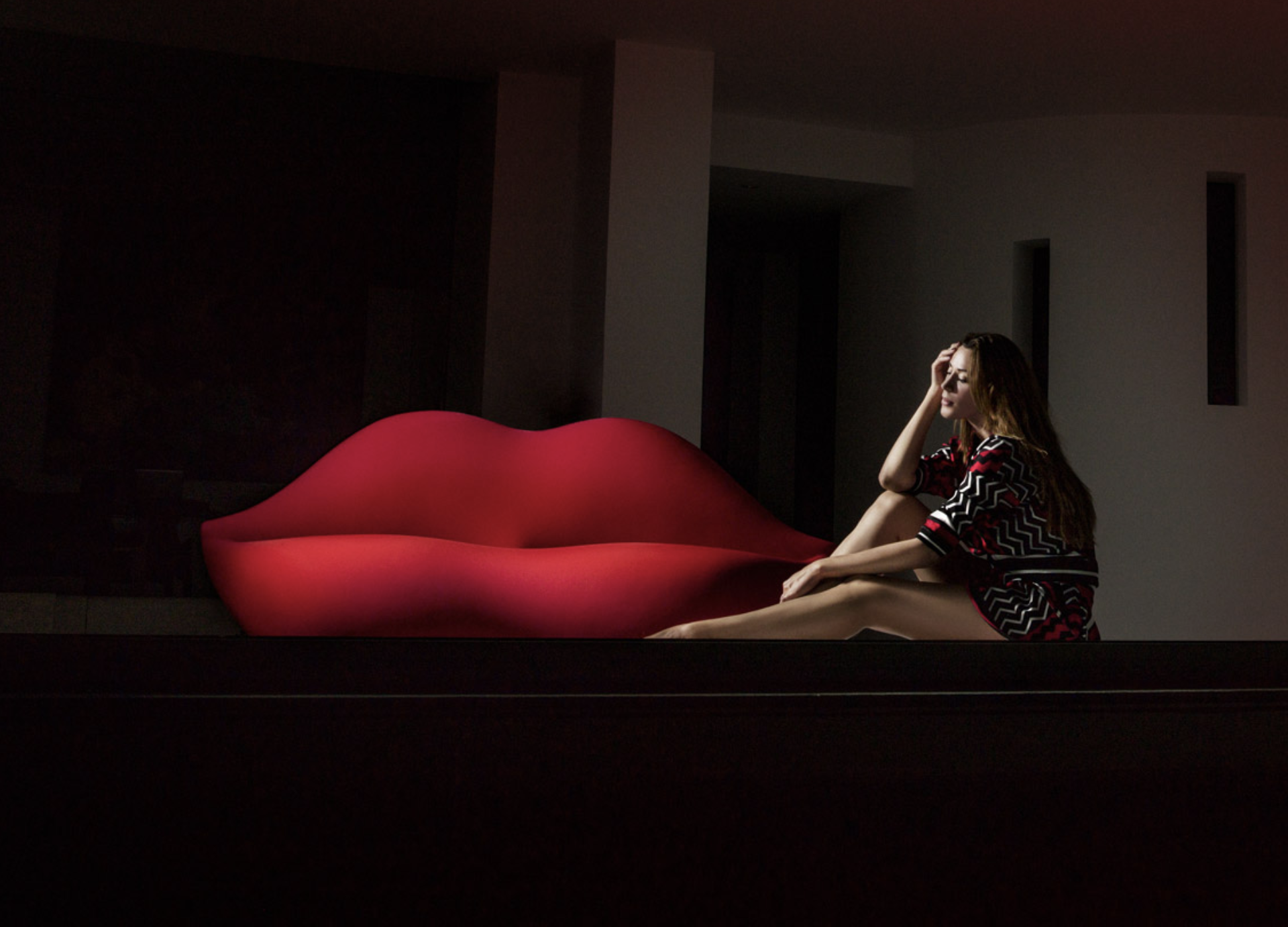 Studio 65 Red Lip 1970 L212 x W80 x H85 cm Couch in soft polyurethane upholstered with fabric.