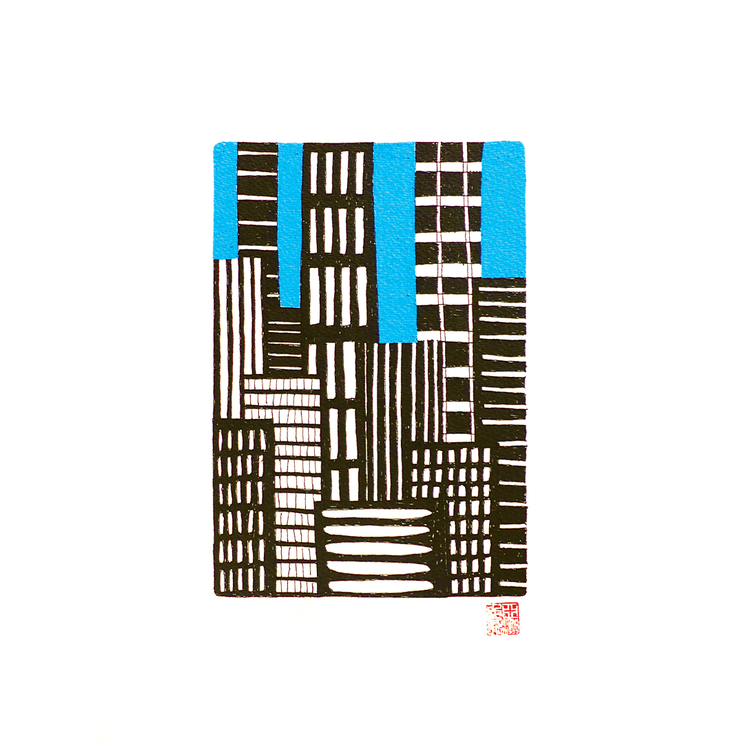 Francesco Lietti Modern City, Amethyst, 2020 Linocut and acrylic on paper 21 x 15 cm