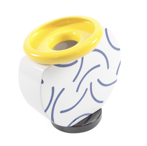 Hand-turned and hand-painted ceramic vase with kiln- sublimated decorative decals.