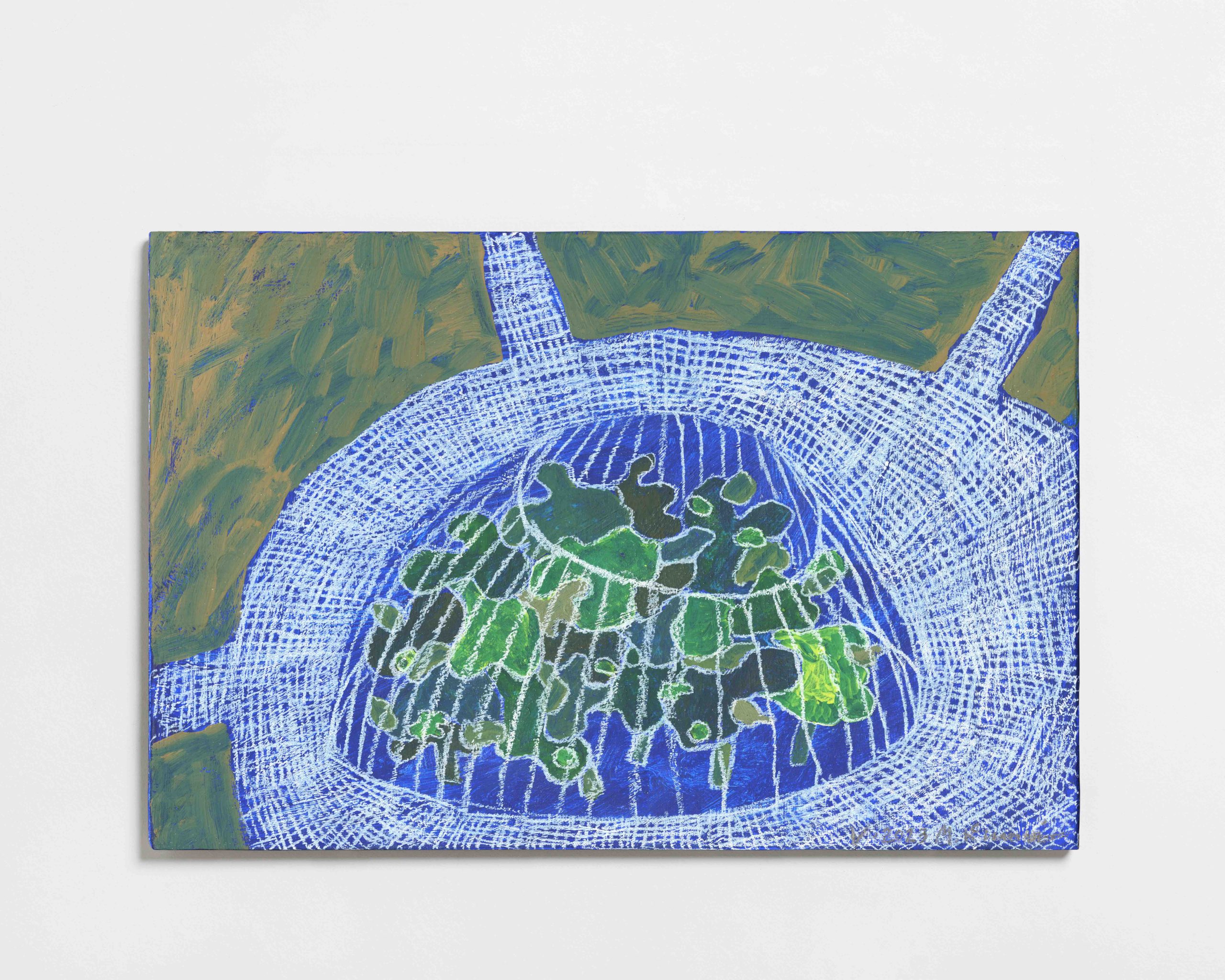 Michele De Lucchi Cultivation Station, 2024 Tempera, vinyl paint, white pencil and paper on wooden board. 20 x 30 cm