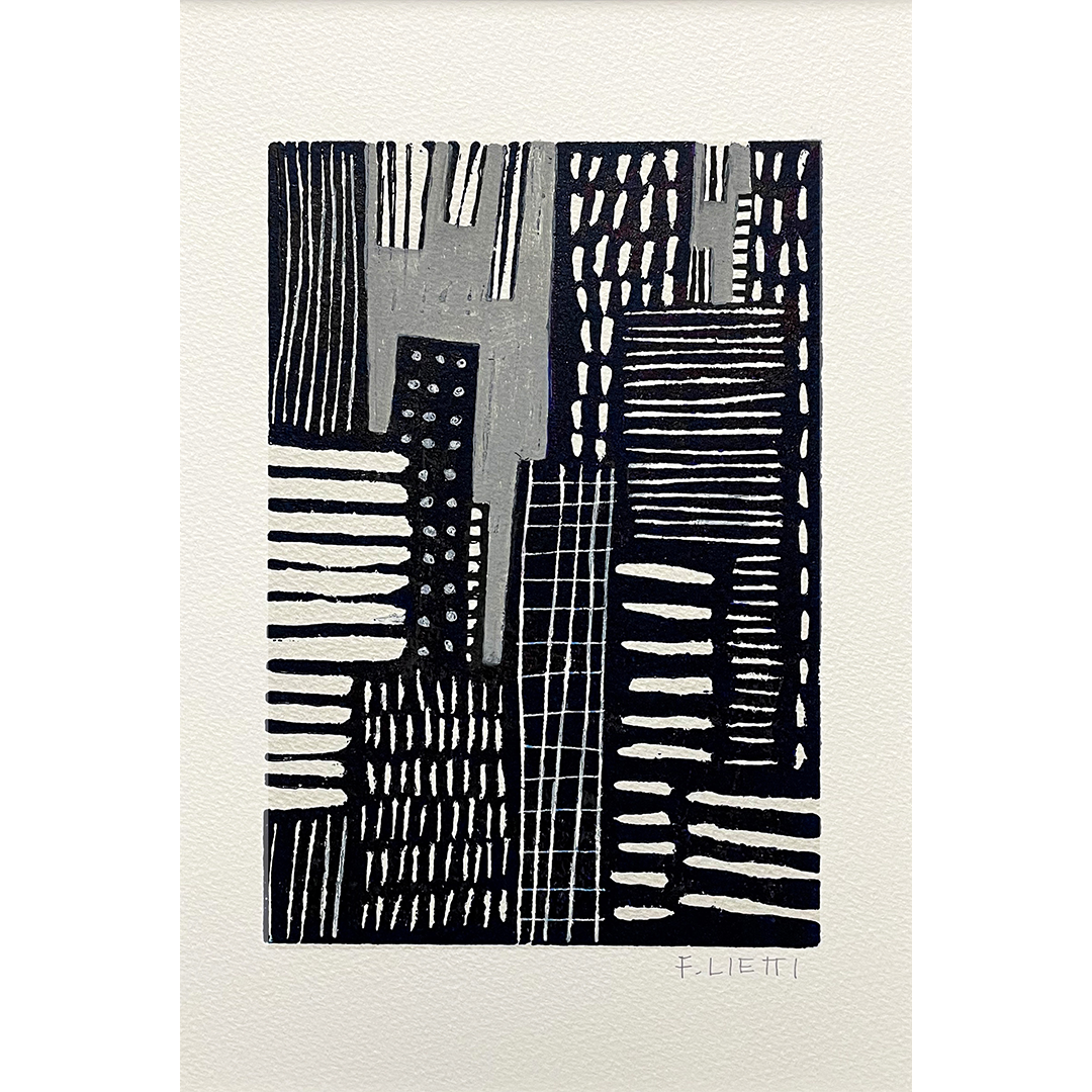 Francesco Lietti Modern City, Ash, 2020 Linocut and acrylic on paper 21 x 15 cm
