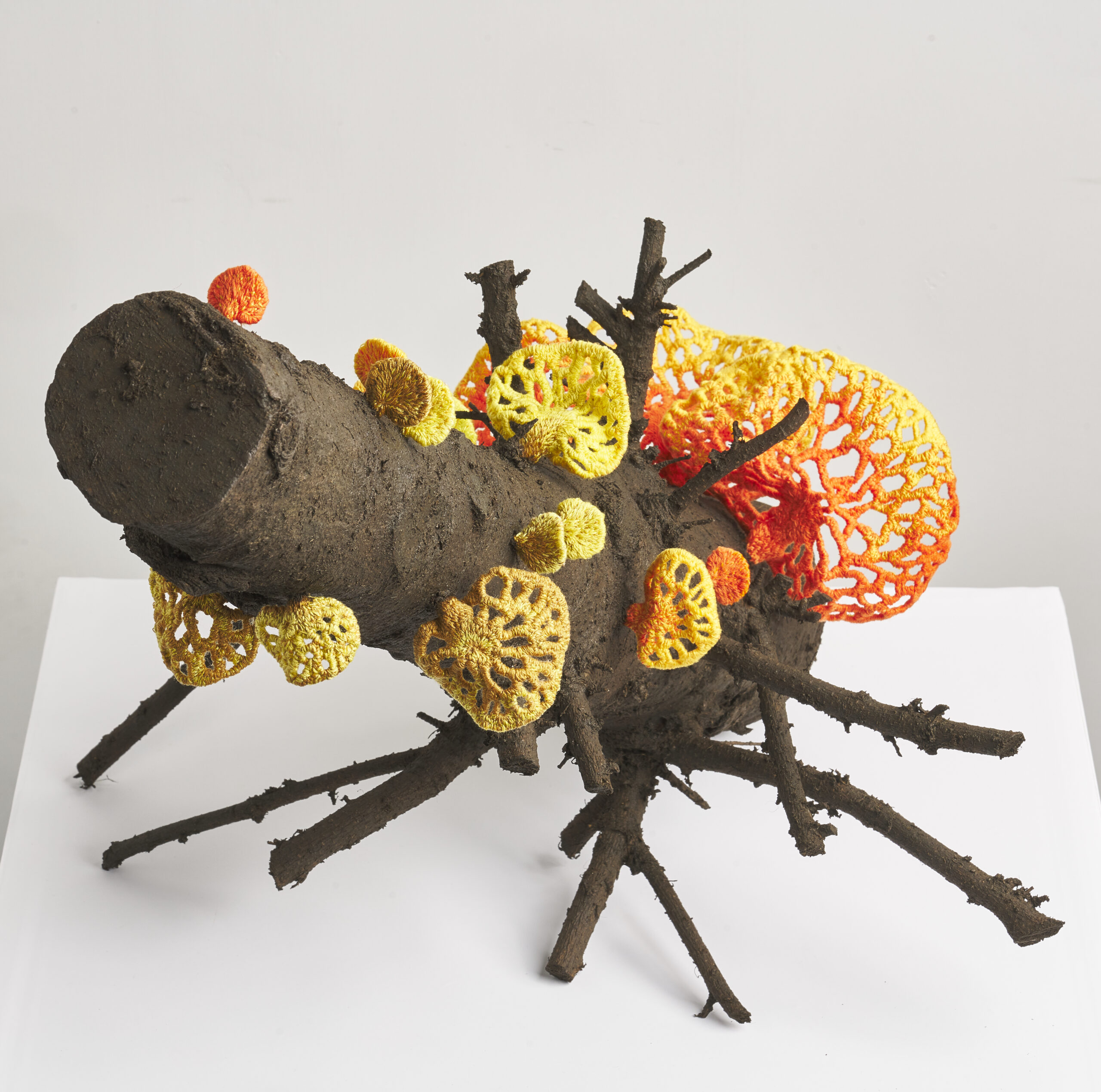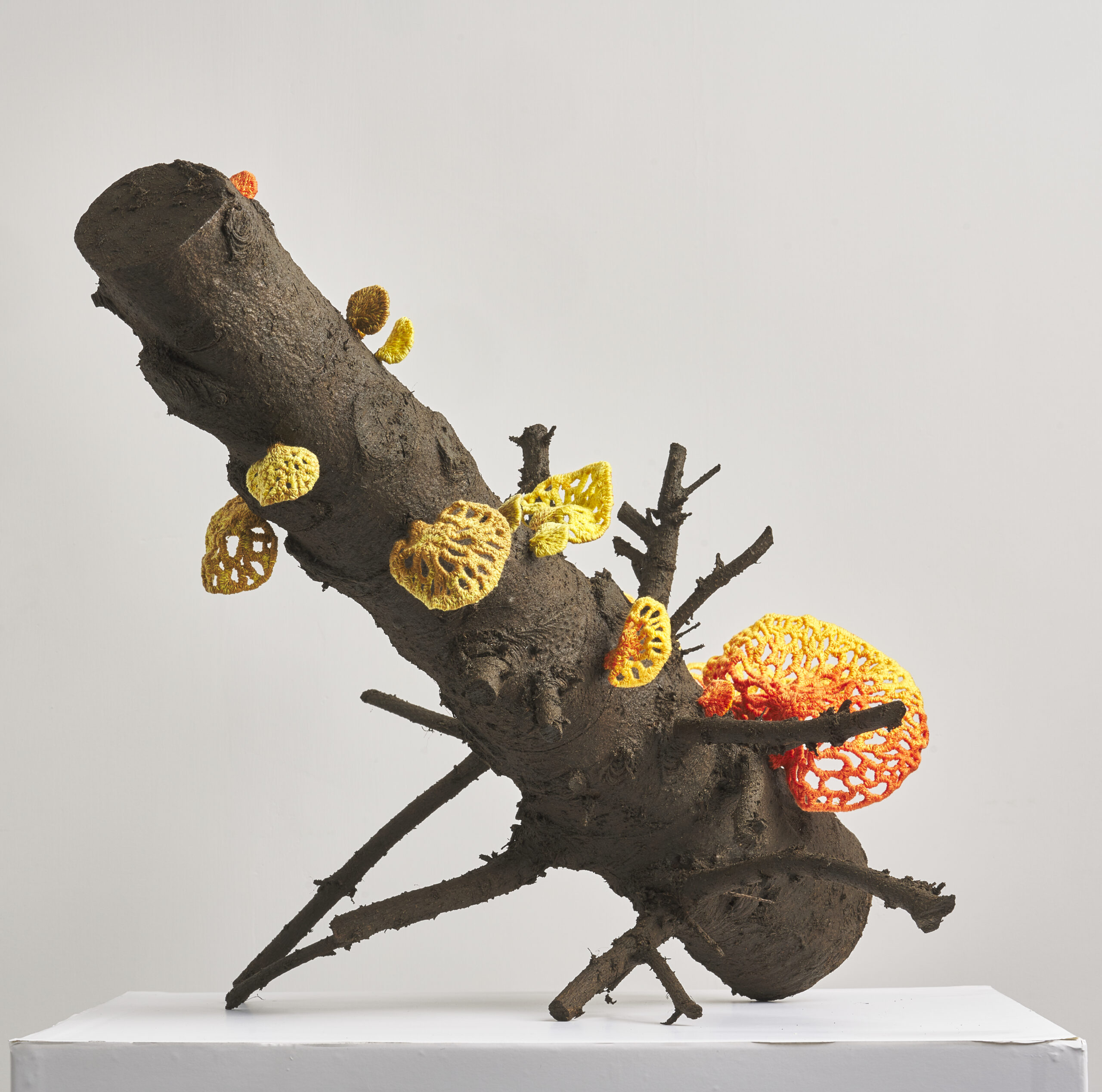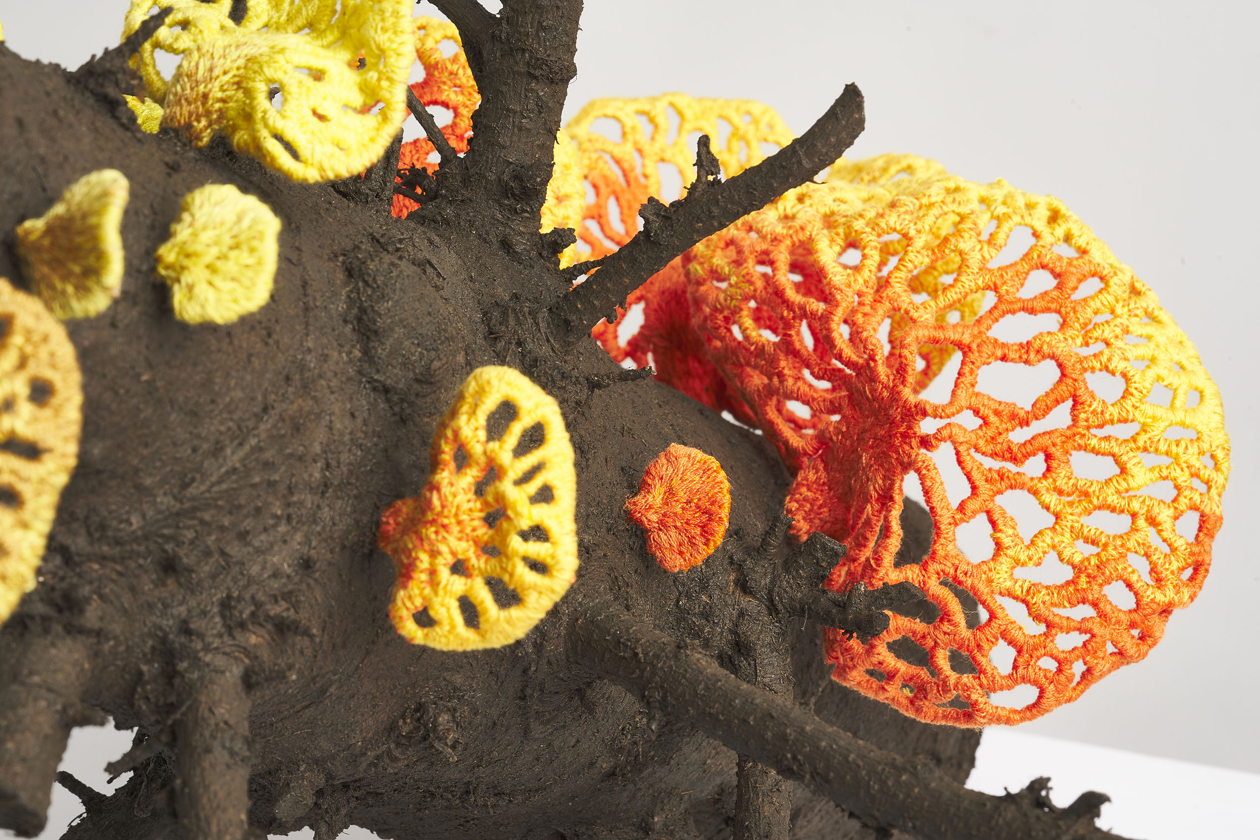 Sharu Sikdar I Fear My Anger Will Eat Me Alive, 2022 Hand embroidery threads, felt, wire, wood, soil, acrylic paint Dimensions variable