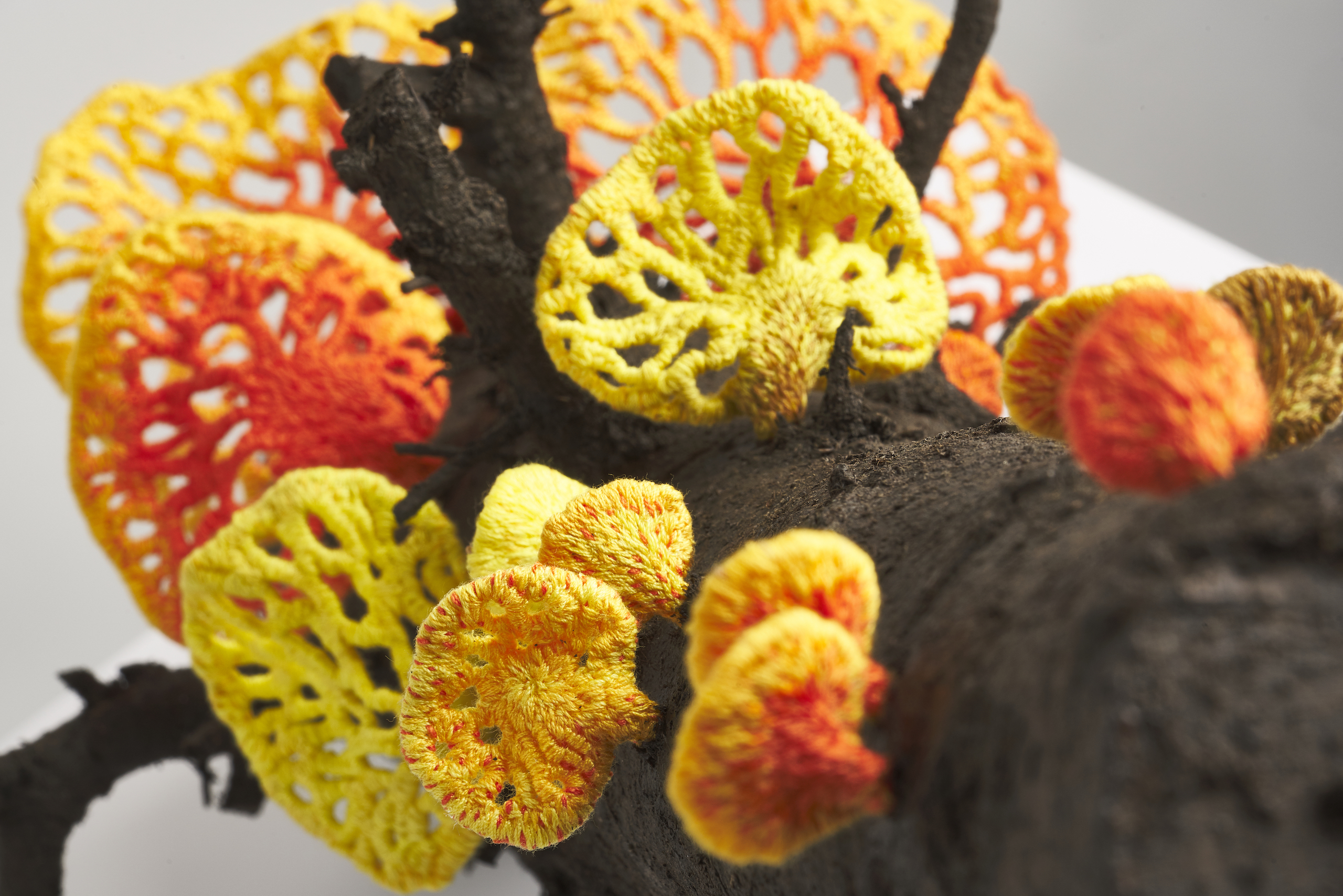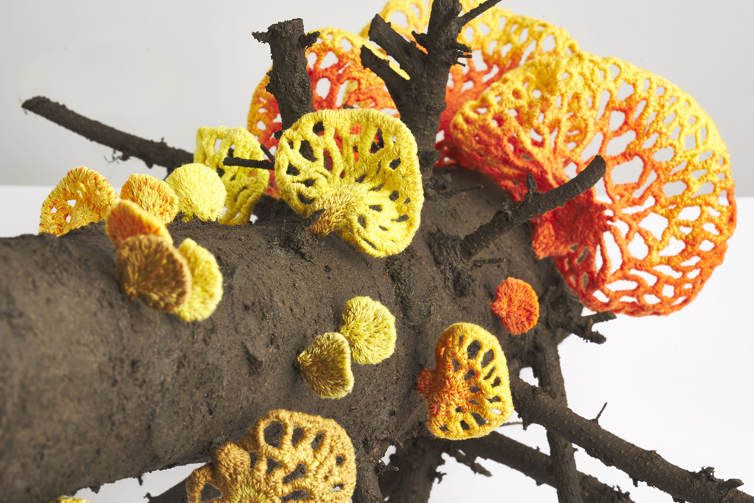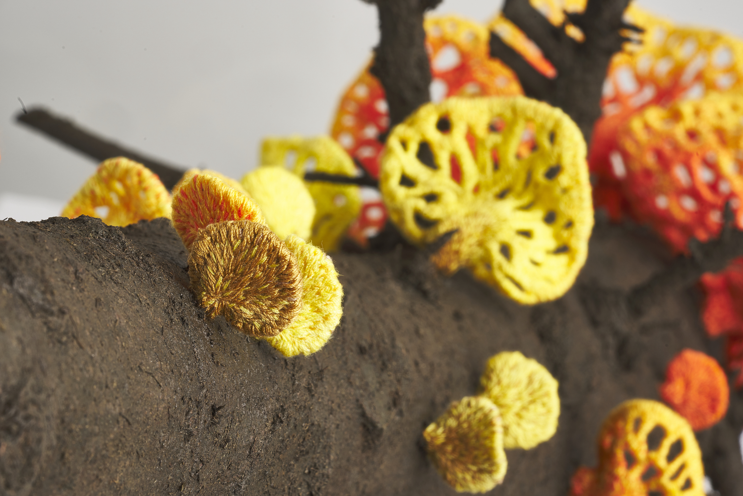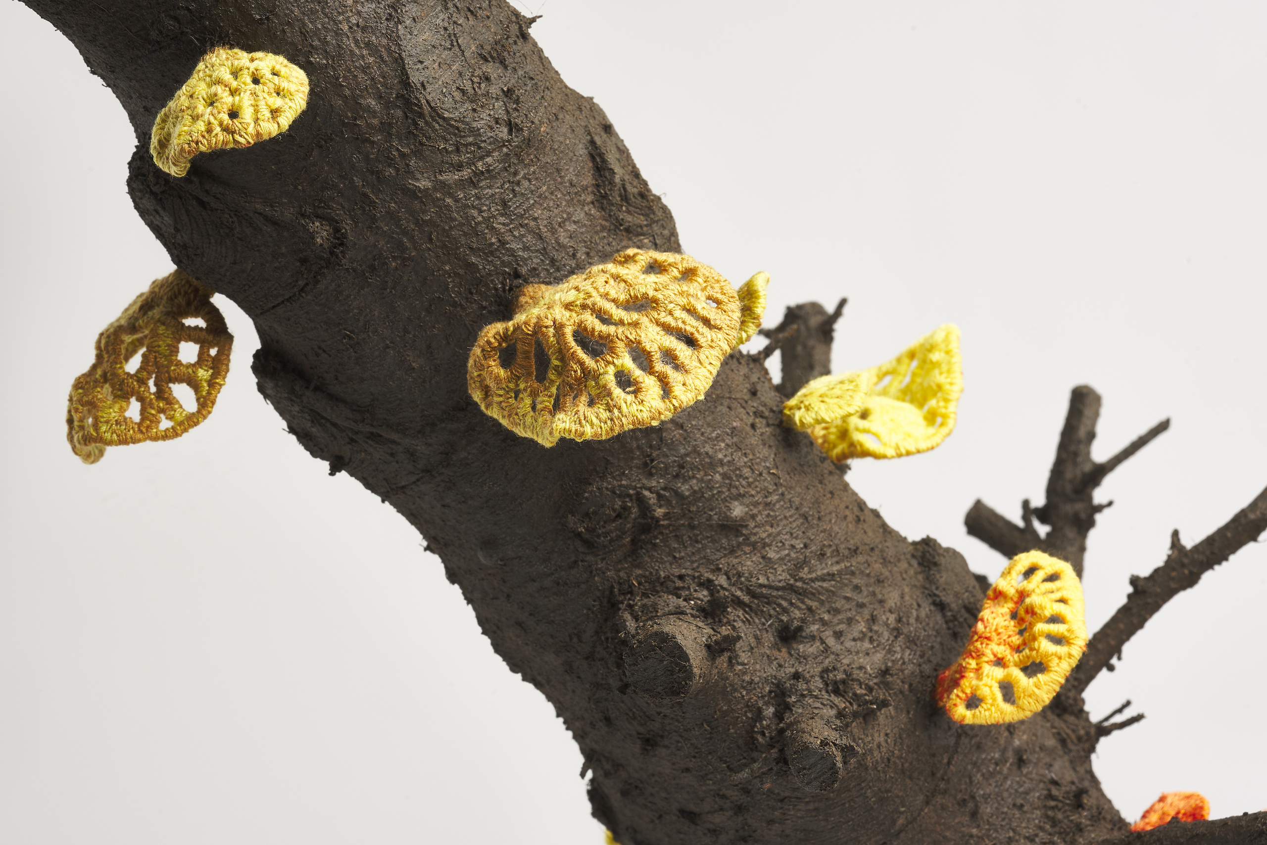 Sharu Sikdar I Fear My Anger Will Eat Me Alive, 2022 Hand embroidery threads, felt, wire, wood, soil, acrylic paint Dimensions variable