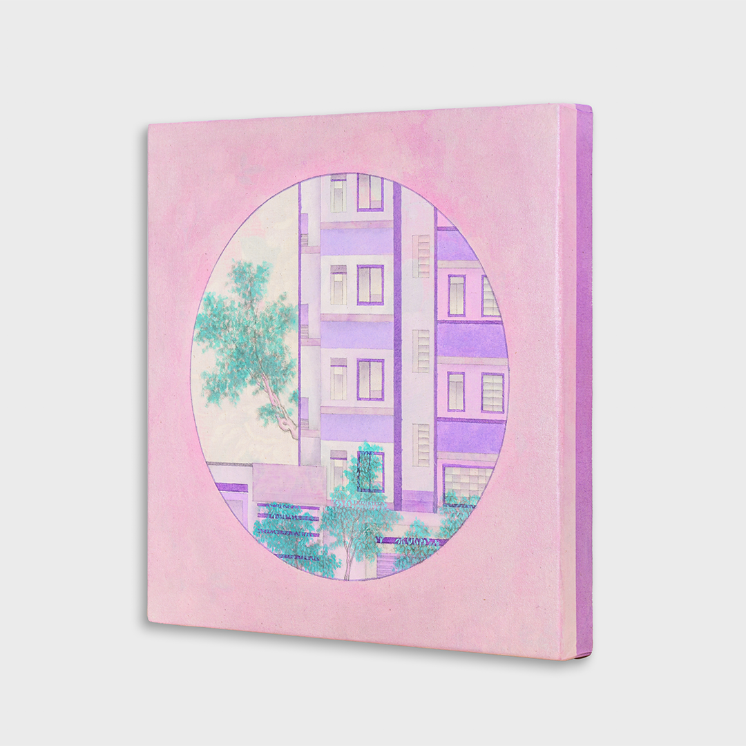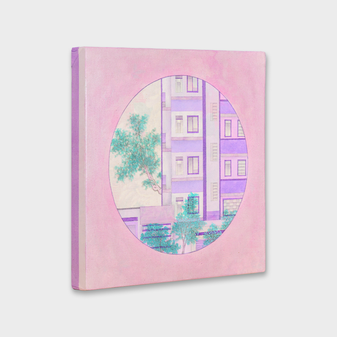 Chan Sai Lok Somewhere Along Hollywood Road II, 2024 Fabric, canvas, acrylic paint, ink 39.5 x 39.5 x 4 cm